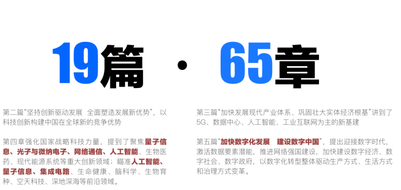 正因?yàn)閿?shù)字經(jīng)濟(jì)如此之重要,中央一號(hào)文件、中華人民共和國(guó)國(guó)民經(jīng)濟(jì)和社會(huì)發(fā)展第十四個(gè)五年規(guī)劃和2035年遠(yuǎn)景目標(biāo)綱要都提到了數(shù)字經(jīng)濟(jì),國(guó)務(wù)院正式印發(fā)了《“十四五”數(shù)字經(jīng)濟(jì)發(fā)展規(guī)劃》,明確了“十四五”時(shí)期推動(dòng)數(shù)字經(jīng)濟(jì)健康發(fā)展的知道思 想、基本原則、發(fā)展目標(biāo)、重點(diǎn)任務(wù)和保障措施,國(guó)家發(fā)改委、中華人民共和國(guó)工業(yè)和信息化部、國(guó)資委、國(guó)家住建部、商務(wù)部、交通運(yùn)輸部、農(nóng)業(yè)農(nóng)村部等都從不同層面做出了數(shù)十項(xiàng)的部署和安排,因?yàn)椴辉诒疚闹饕U述范圍內(nèi),不再贅述。